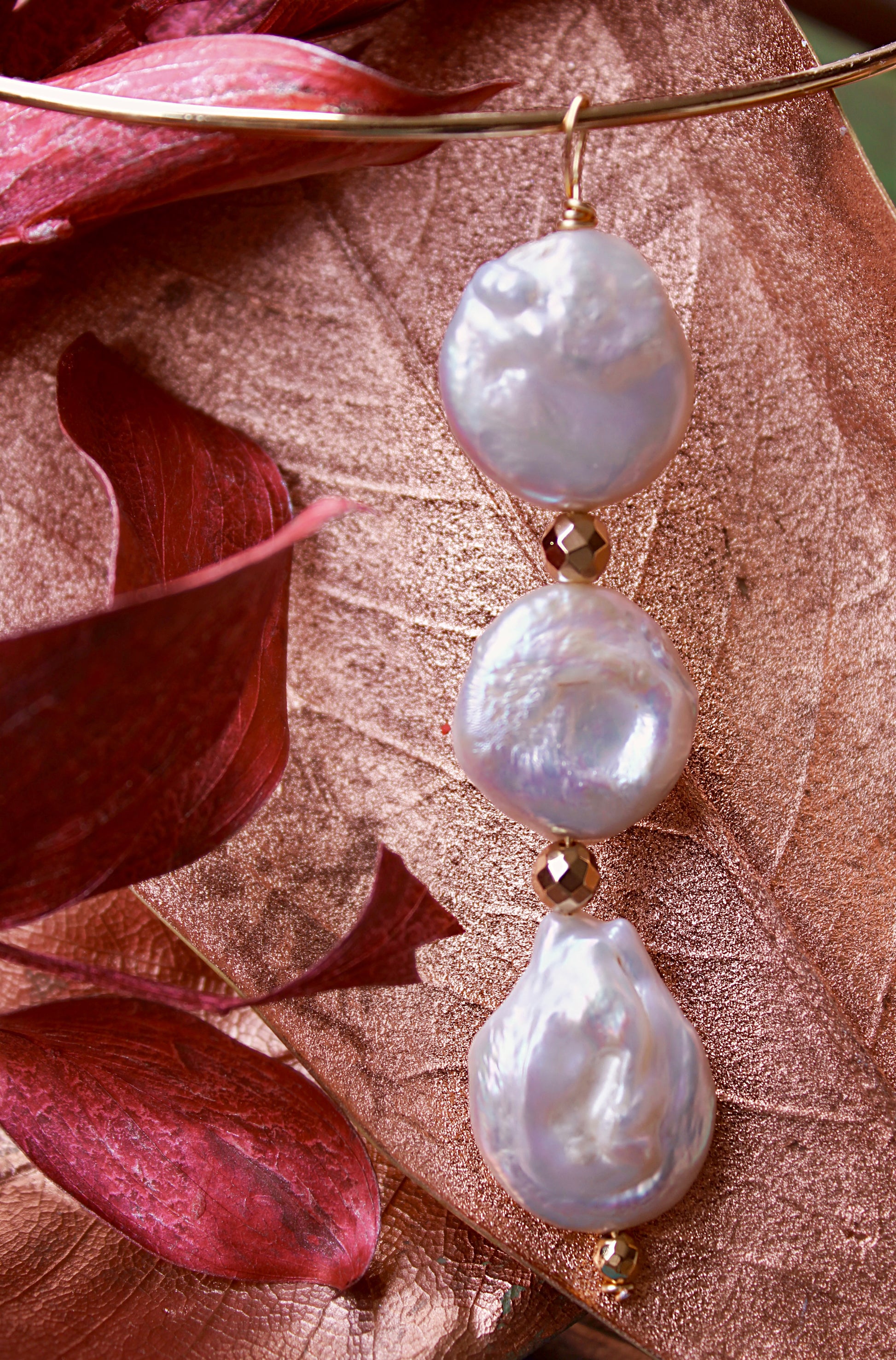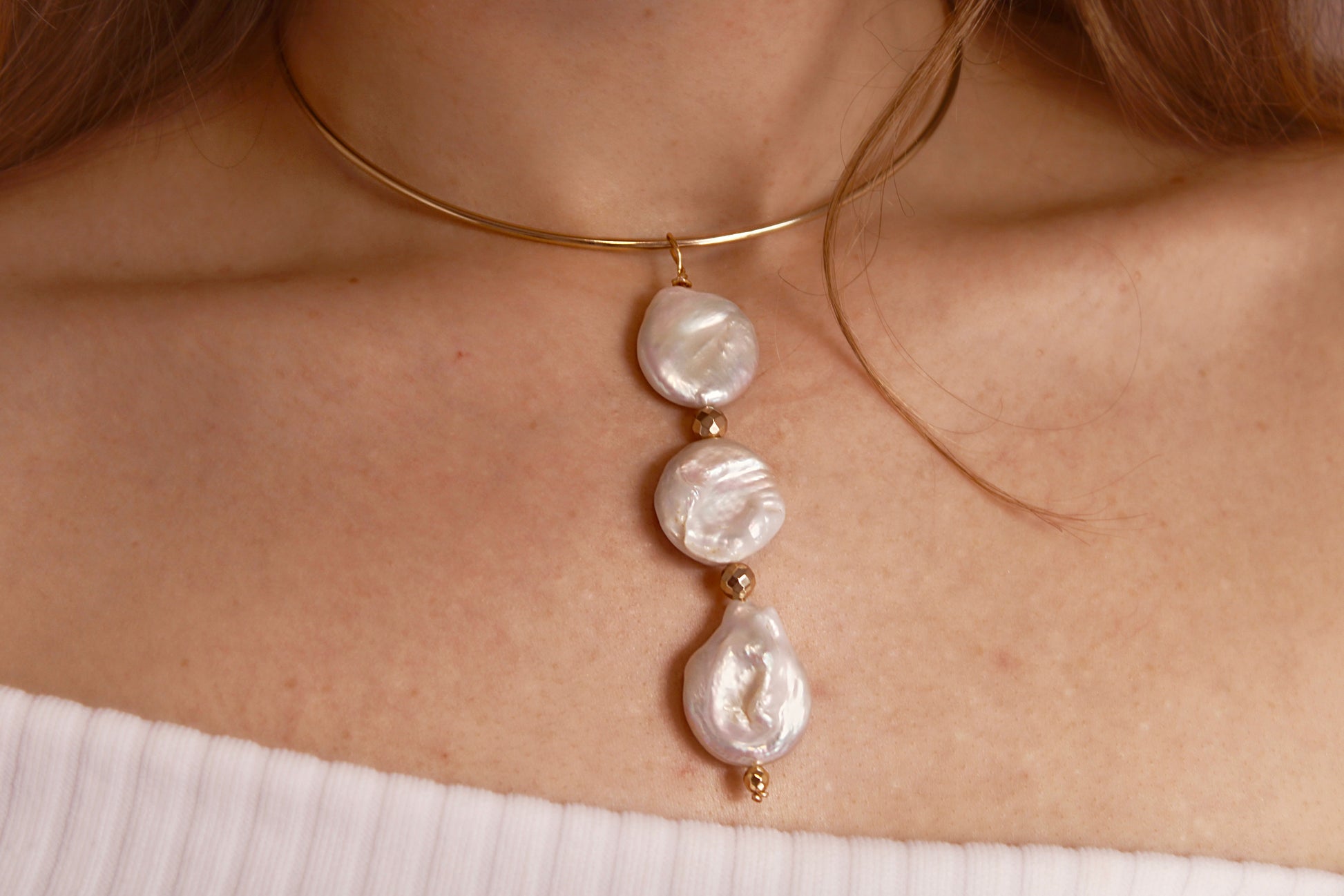 El choker Eclipse está hecho a mano en un proceso artesanal de 2 horas. Cada piedra de agua dulce es cuidadosamente engarzada en alambre, y el enganche de acero inoxidable garantiza su durabilidad y es hipoalergénico, libre de níquel y plomo. No habrá dos piezas iguales.