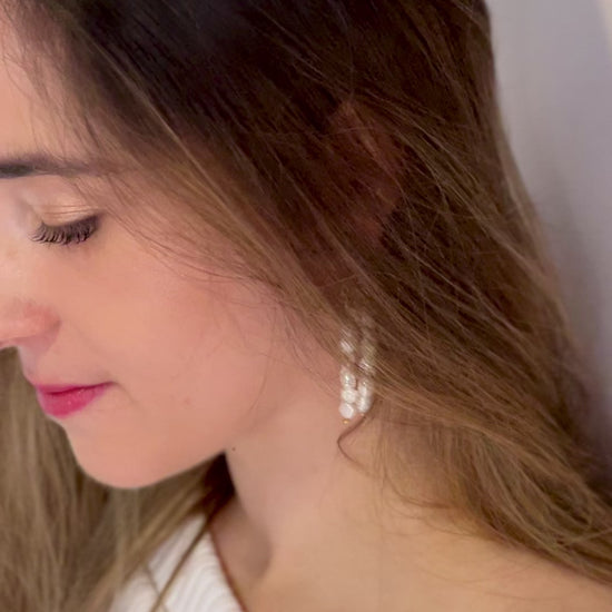 Los Pendientes Bianca son piezas únicas y exclusivas hechas a mano en un proceso artesanal de 2 horas. Cada piedra de agua dulce es cuidadosamente engarzada en alambre, y el enganche de acero inoxidable garantiza su durabilidad y es hipoalergénico, libre de níquel y plomo. No habrá dos piezas iguales.